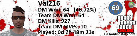 [URL=http://GTAonlinestats.com/showplayer/Val216][IMG]http://GTAonlinestats.com/dmsignature/Val216/sig.png[/IMG][/URL]