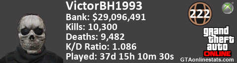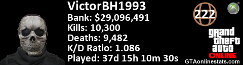 [URL=http://GTAonlinestats.com/showplayer/VictorBH1993][IMG]http://GTAonlinestats.com/signature/VictorBH1993/sig.png[/IMG][/URL]