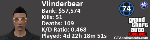 <a href="http://GTAonlinestats.com/showplayer/Vlinderbear"><img src="http://GTAonlinestats.com/signature/Vlinderbear/sig.png" alt="Vlinderbear" border="0" /></a>
