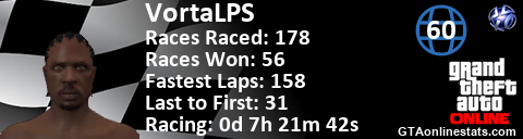 <a href="http://GTAonlinestats.com/showplayer/VortaLPS"><img src="http://GTAonlinestats.com/racesignature/VortaLPS/sig.png" alt="VortaLPS" border="0" /></a>