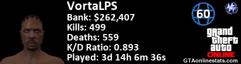 <a href="http://GTAonlinestats.com/showplayer/VortaLPS"><img src="http://GTAonlinestats.com/signature/VortaLPS/sig.png" alt="VortaLPS" border="0" /></a>