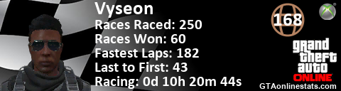 [URL=http://GTAonlinestats.com/showplayer/Vyseon][IMG]http://GTAonlinestats.com/racesignature/Vyseon/sig.png[/IMG][/URL]