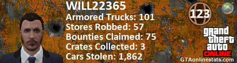 [URL=http://GTAonlinestats.com/showplayer/WILL22365][IMG]http://GTAonlinestats.com/crimesignature/WILL22365/sig.png[/IMG][/URL]