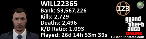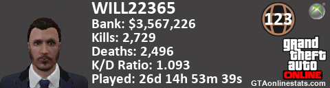 <a href="http://GTAonlinestats.com/showplayer/WILL22365"><img src="http://GTAonlinestats.com/signature/WILL22365/sig.png" alt="WILL22365" border="0" /></a>
