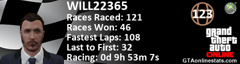[URL=http://GTAonlinestats.com/showplayer/WILL22365][IMG]http://GTAonlinestats.com/racesignature/WILL22365/sig.png[/IMG][/URL]