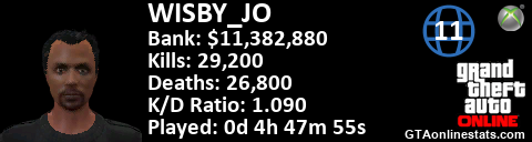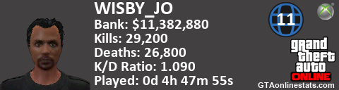 <a href="http://GTAonlinestats.com/showplayer/WISBY_JO/2"><img src="http://GTAonlinestats.com/signature/WISBY_JO/2/sig.png" alt="WISBY_JO" border="0" /></a>