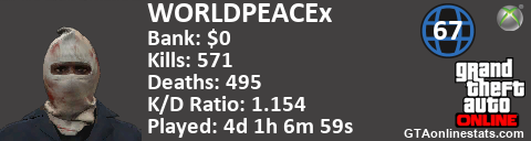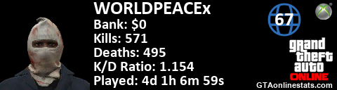 <a href="http://GTAonlinestats.com/showplayer/WORLDPEACEx"><img src="http://GTAonlinestats.com/signature/WORLDPEACEx/sig.png" alt="WORLDPEACEx" border="0" /></a>