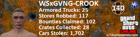 [URL=http://GTAonlinestats.com/showplayer/WSxGVNG-CROOK][IMG]http://GTAonlinestats.com/crimesignature/WSxGVNG-CROOK/sig.png[/IMG][/URL]