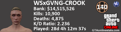 <a href="http://GTAonlinestats.com/showplayer/WSxGVNG-CROOK"><img src="http://GTAonlinestats.com/signature/WSxGVNG-CROOK/sig.png" alt="WSxGVNG-CROOK" border="0" /></a>