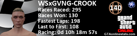 [URL=http://GTAonlinestats.com/showplayer/WSxGVNG-CROOK][IMG]http://GTAonlinestats.com/racesignature/WSxGVNG-CROOK/sig.png[/IMG][/URL]