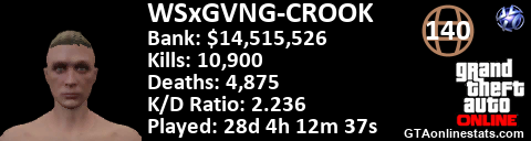 [URL=http://GTAonlinestats.com/showplayer/WSxGVNG-CROOK][IMG]http://GTAonlinestats.com/signature/WSxGVNG-CROOK/sig.png[/IMG][/URL]