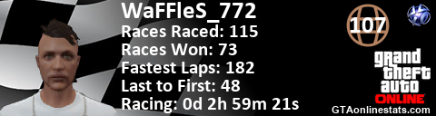 [URL=http://GTAonlinestats.com/showplayer/WaFFleS_772][IMG]http://GTAonlinestats.com/racesignature/WaFFleS_772/sig.png[/IMG][/URL]