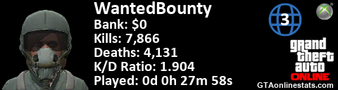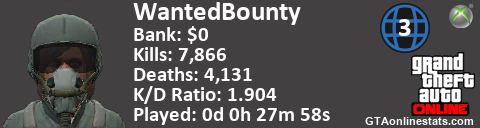 [URL=http://GTAonlinestats.com/showplayer/WantedBounty/2][IMG]http://GTAonlinestats.com/signature/WantedBounty/2/sig.png[/IMG][/URL]