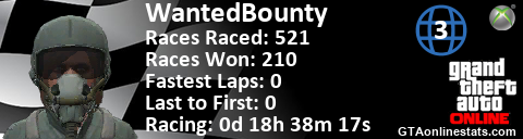 [URL=http://GTAonlinestats.com/showplayer/WantedBounty/2][IMG]http://GTAonlinestats.com/racesignature/WantedBounty/2/sig.png[/IMG][/URL]