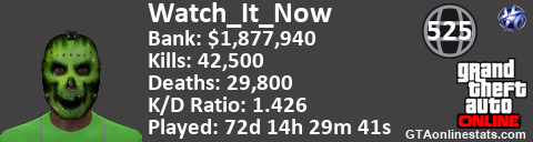 <a href="http://GTAonlinestats.com/showplayer/Watch_It_Now"><img src="http://GTAonlinestats.com/signature/Watch_It_Now/sig.png" alt="Watch_It_Now" border="0" /></a>