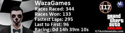 <a href="http://GTAonlinestats.com/showplayer/WazaGames"><img src="http://GTAonlinestats.com/racesignature/WazaGames/sig.png" alt="WazaGames" border="0" /></a>