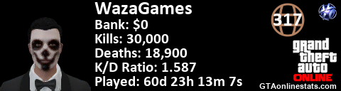 <a href="http://GTAonlinestats.com/showplayer/WazaGames"><img src="http://GTAonlinestats.com/dmsignature/WazaGames/sig.png" alt="WazaGames" border="0" /></a>