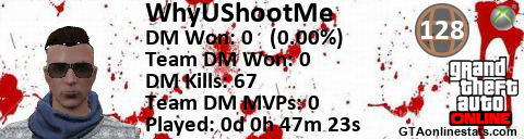 [URL=http://GTAonlinestats.com/showplayer/WhyUShootMe][IMG]http://GTAonlinestats.com/dmsignature/WhyUShootMe/sig.png[/IMG][/URL]