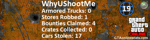 [URL=http://GTAonlinestats.com/showplayer/WhyUShootMe/2][IMG]http://GTAonlinestats.com/crimesignature/WhyUShootMe/2/sig.png[/IMG][/URL]