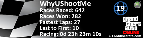 [URL=http://GTAonlinestats.com/showplayer/WhyUShootMe/2][IMG]http://GTAonlinestats.com/racesignature/WhyUShootMe/2/sig.png[/IMG][/URL]