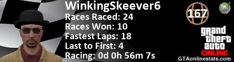 <a href="http://GTAonlinestats.com/showplayer/WinkingSkeever6"><img src="http://GTAonlinestats.com/racesignature/WinkingSkeever6/sig.png" alt="WinkingSkeever6" border="0" /></a>