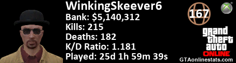 <a href="http://GTAonlinestats.com/showplayer/WinkingSkeever6"><img src="http://GTAonlinestats.com/dmsignature/WinkingSkeever6/sig.png" alt="WinkingSkeever6" border="0" /></a>