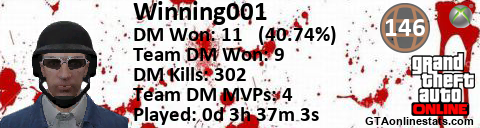[URL=http://GTAonlinestats.com/showplayer/Winning001][IMG]http://GTAonlinestats.com/dmsignature/Winning001/sig.png[/IMG][/URL]