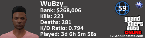[URL=http://GTAonlinestats.com/showplayer/WuBzy_][IMG]http://GTAonlinestats.com/signature/WuBzy_/sig.png[/IMG][/URL]