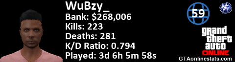 [URL=http://GTAonlinestats.com/showplayer/WuBzy_][IMG]http://GTAonlinestats.com/greysignature/WuBzy_/sig.png[/IMG][/URL]