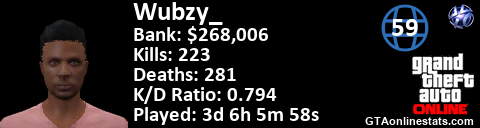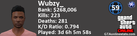 [URL=http://GTAonlinestats.com/showplayer/Wubzy_][IMG]http://GTAonlinestats.com/signature/Wubzy_/sig.png[/IMG][/URL]