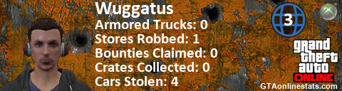 [URL=http://GTAonlinestats.com/showplayer/Wuggatus/2][IMG]http://GTAonlinestats.com/crimesignature/Wuggatus/2/sig.png[/IMG][/URL]