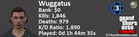 [URL=http://GTAonlinestats.com/showplayer/Wuggatus/2][IMG]http://GTAonlinestats.com/greysignature/Wuggatus/2/sig.png[/IMG][/URL]