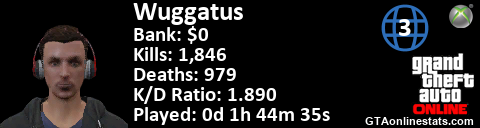 [URL=http://GTAonlinestats.com/showplayer/Wuggatus/2][IMG]http://GTAonlinestats.com/randomsignature/Wuggatus/2/sig.png[/IMG][/URL]