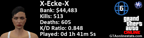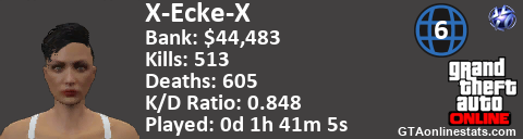 <a href="http://GTAonlinestats.com/showplayer/X-Ecke-X/2"><img src="http://GTAonlinestats.com/signature/X-Ecke-X/2/sig.png" alt="X-Ecke-X" border="0" /></a>