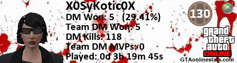 [URL=http://GTAonlinestats.com/showplayer/X0SyKotic0X][IMG]http://GTAonlinestats.com/dmsignature/X0SyKotic0X/sig.png[/IMG][/URL]