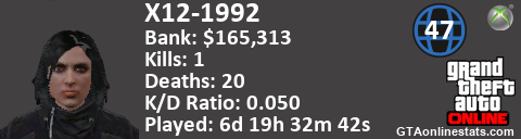 <a href="http://GTAonlinestats.com/showplayer/X12-1992"><img src="http://GTAonlinestats.com/signature/X12-1992/sig.png" alt="X12-1992" border="0" /></a>