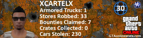 [URL=http://GTAonlinestats.com/showplayer/XCARTELX][IMG]http://GTAonlinestats.com/crimesignature/XCARTELX/sig.png[/IMG][/URL]