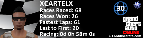 <a href="http://GTAonlinestats.com/showplayer/XCARTELX"><img src="http://GTAonlinestats.com/racesignature/XCARTELX/sig.png" alt="XCARTELX" border="0" /></a>