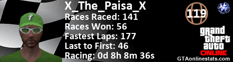 [URL=http://GTAonlinestats.com/showplayer/X_The_Paisa_X][IMG]http://GTAonlinestats.com/racesignature/X_The_Paisa_X/sig.png[/IMG][/URL]