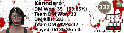 <a href="http://GTAonlinestats.com/showplayer/Xannderz"><img src="http://GTAonlinestats.com/dmsignature/Xannderz/sig.png" alt="Xannderz" border="0" /></a>