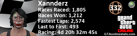 <a href="http://GTAonlinestats.com/showplayer/Xannderz"><img src="http://GTAonlinestats.com/racesignature/Xannderz/sig.png" alt="Xannderz" border="0" /></a>