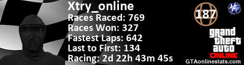 [URL=http://GTAonlinestats.com/showplayer/Xtry_online][IMG]http://GTAonlinestats.com/racesignature/Xtry_online/sig.png[/IMG][/URL]
