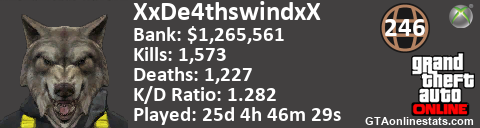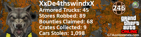 [URL=http://GTAonlinestats.com/showplayer/XxDe4thswindxX][IMG]http://GTAonlinestats.com/signature/XxDe4thswindxX/sig.png[/IMG][/URL]