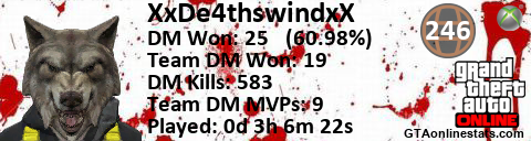 [URL=http://GTAonlinestats.com/showplayer/XxDe4thswindxX][IMG]http://GTAonlinestats.com/dmsignature/XxDe4thswindxX/sig.png[/IMG][/URL]