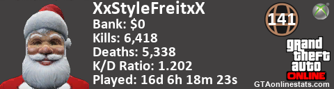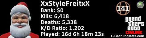 <a href="http://GTAonlinestats.com/showplayer/XxStyleFreitxX"><img src="http://GTAonlinestats.com/dmsignature/XxStyleFreitxX/sig.png" alt="XxStyleFreitxX" border="0" /></a>