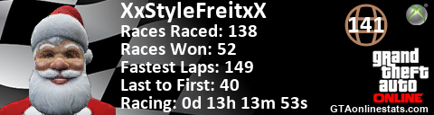 <a href="http://GTAonlinestats.com/showplayer/XxStyleFreitxX"><img src="http://GTAonlinestats.com/racesignature/XxStyleFreitxX/sig.png" alt="XxStyleFreitxX" border="0" /></a>