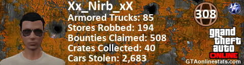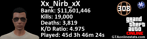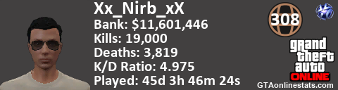 [URL=http://GTAonlinestats.com/showplayer/Xx_Nirb_xX][IMG]http://GTAonlinestats.com/signature/Xx_Nirb_xX/sig.png[/IMG][/URL]