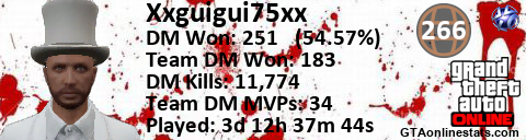 <a href="http://GTAonlinestats.com/showplayer/Xxguigui75xx"><img src="http://GTAonlinestats.com/signature/Xxguigui75xx/sig.png" alt="Xxguigui75xx" border="0" /></a>