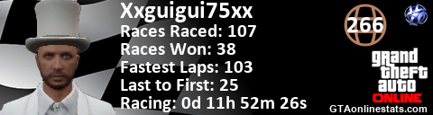 [URL=http://GTAonlinestats.com/showplayer/Xxguigui75xx][IMG]http://GTAonlinestats.com/racesignature/Xxguigui75xx/sig.png[/IMG][/URL]