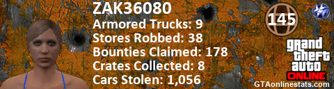 [URL=http://GTAonlinestats.com/showplayer/ZAK36080][IMG]http://GTAonlinestats.com/crimesignature/ZAK36080/sig.png[/IMG][/URL]